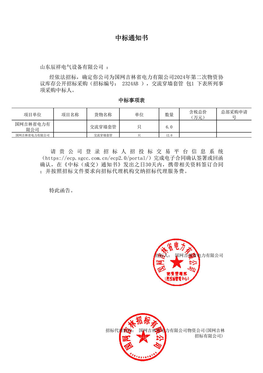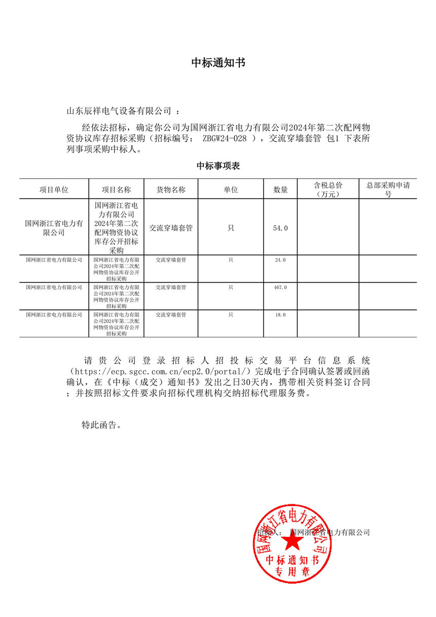 2024.11.29 交流穿墻套管中標(biāo)通知書(shū)